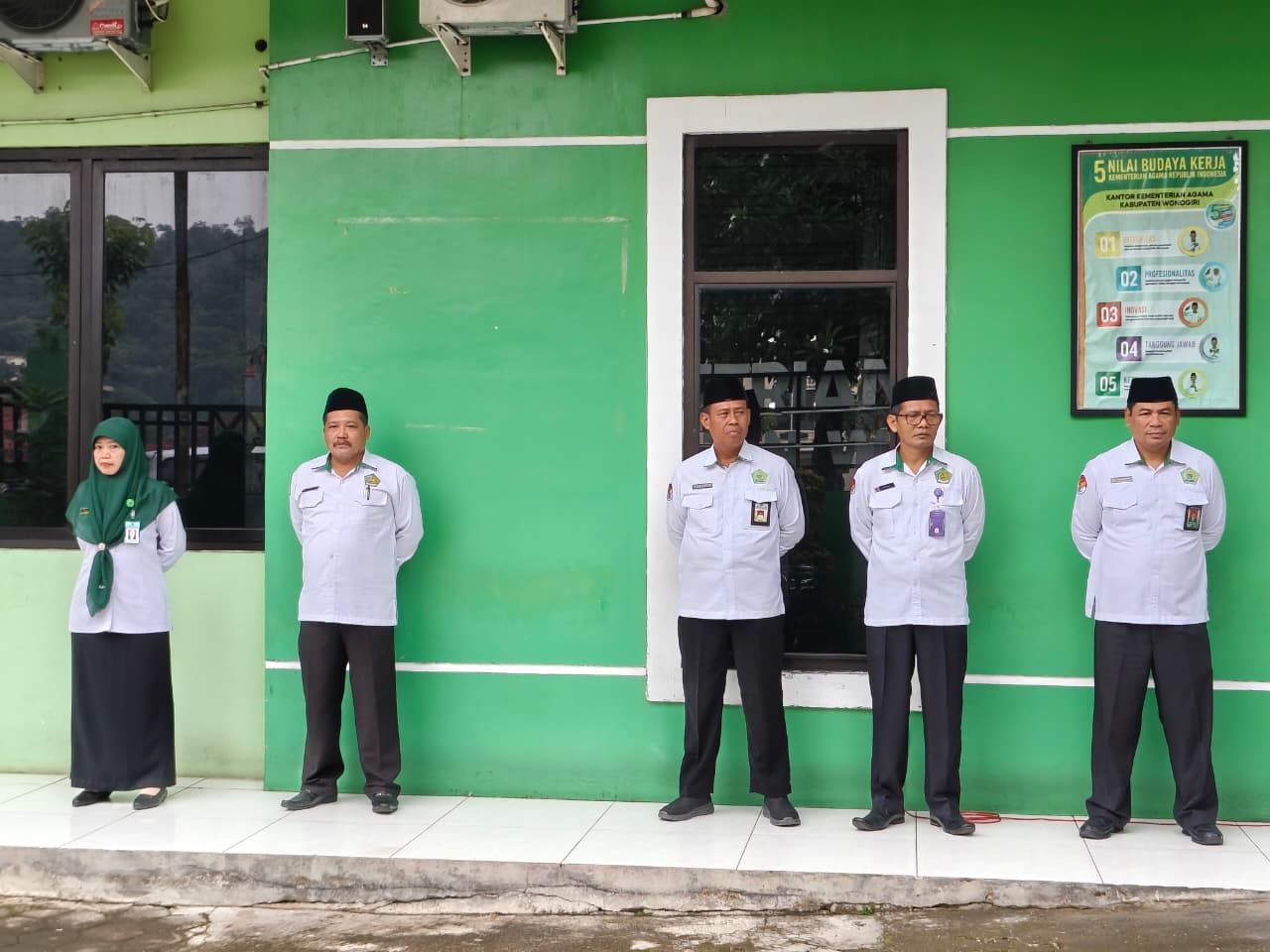 Ketiga, Mursidi menyampaikan bahwa saat ini pihaknya tengah melakukan penataan terhadap Taman Pendidikan Al-Qur’an (TPQ), Madrasah Diniyah (Madin), dan pondok pesantren. Seluruh pendataan dan pengelolaan lembaga tersebut akan berbasis aplikasi guna meningkatkan tertib administrasi dan akurasi data. Menutup amanatnya, Mursidi mengimbau seluruh pegawai untuk senantiasa menjaga kesehatan, mengingat kondisi cuaca belakangan ini cukup ekstrem. “Kesehatan adalah modal utama dalam bekerja. Mari kita jaga bersama agar tetap dapat menjalankan tugas secara optimal,” pungkasnya.