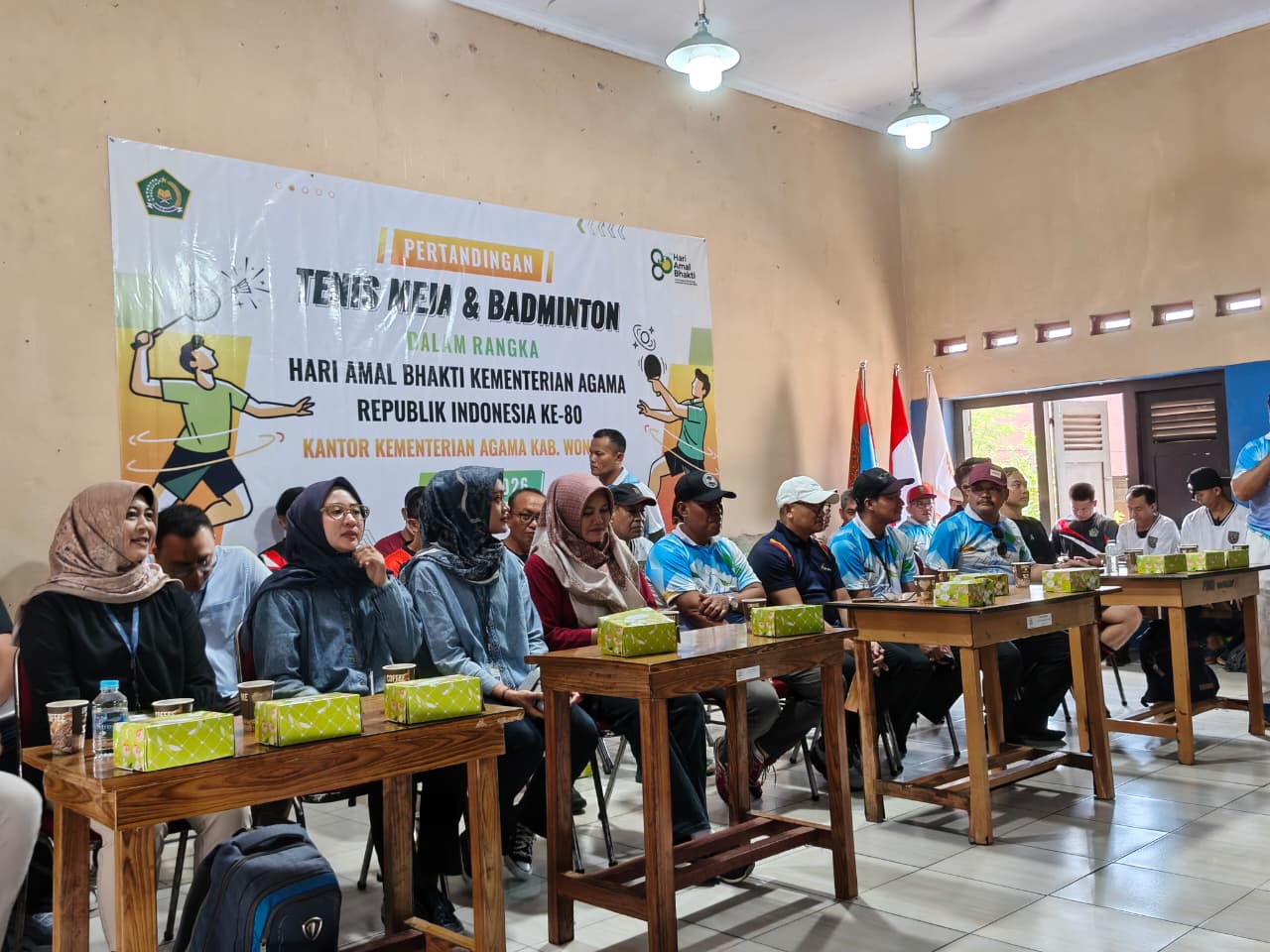 Wonogiri (Humas) – Peringatan Hari Amal Bakti (HAB) Kementerian Agama ke-80 di Kabupaten Wonogiri semakin semarak dengan digelarnya turnamen tenis meja yang berlangsung hari ini pada Kamis (11/12/2025) di Gedung PTMSI. Kegiatan tersebut menjadi bagian dari rangkaian HAB yang sudah dimulai sejak 5 Desember, menghadirkan suasana kebersamaan dan antusiasme tinggi dari para ASN di lingkungan Kemenag Wonogiri.